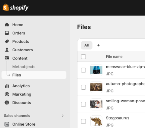 - From the Shopify admin, select Content.