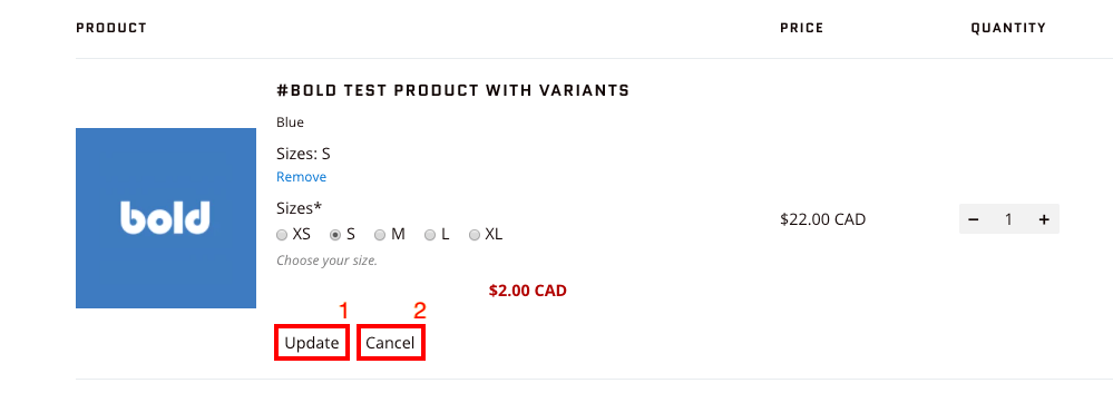 Slide-down: Customers will be able to edit their options right beside the product on the cart page.