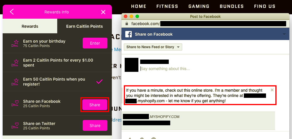 Once a customer does this for a particular social media platform, they're no longer able to share the store to receive reward points. Social sharing can only be done once.