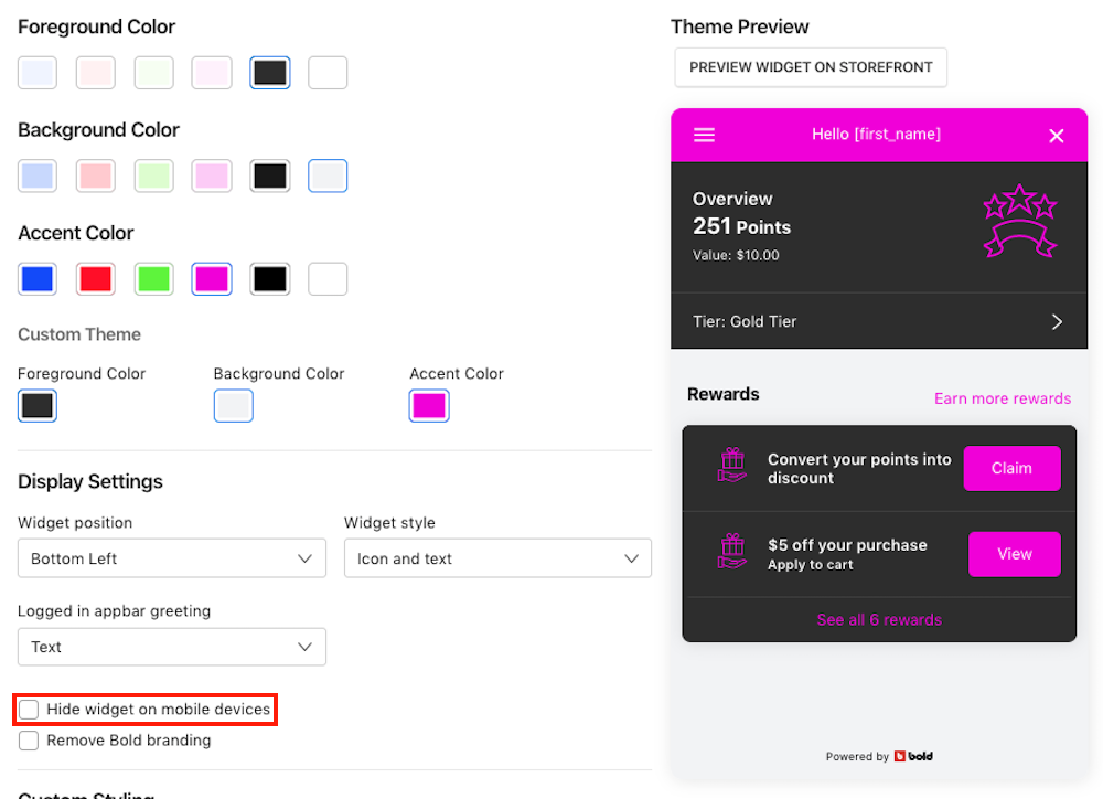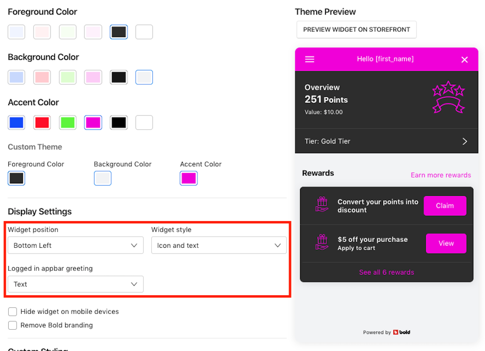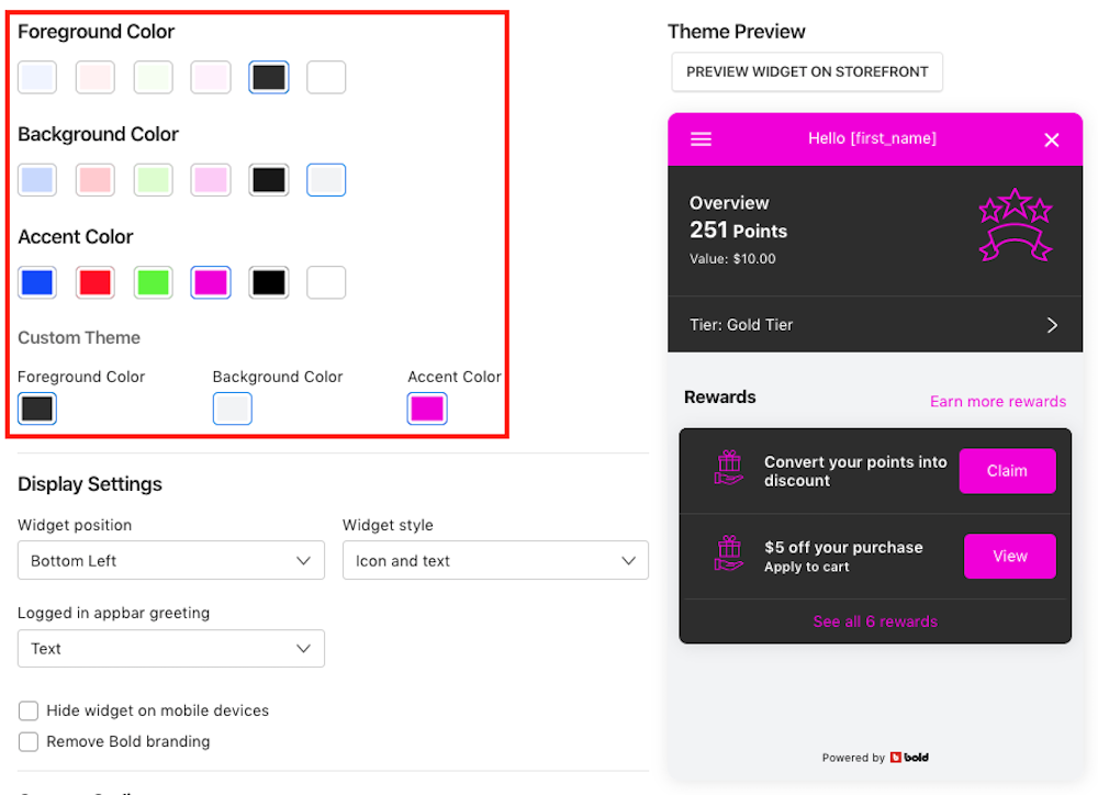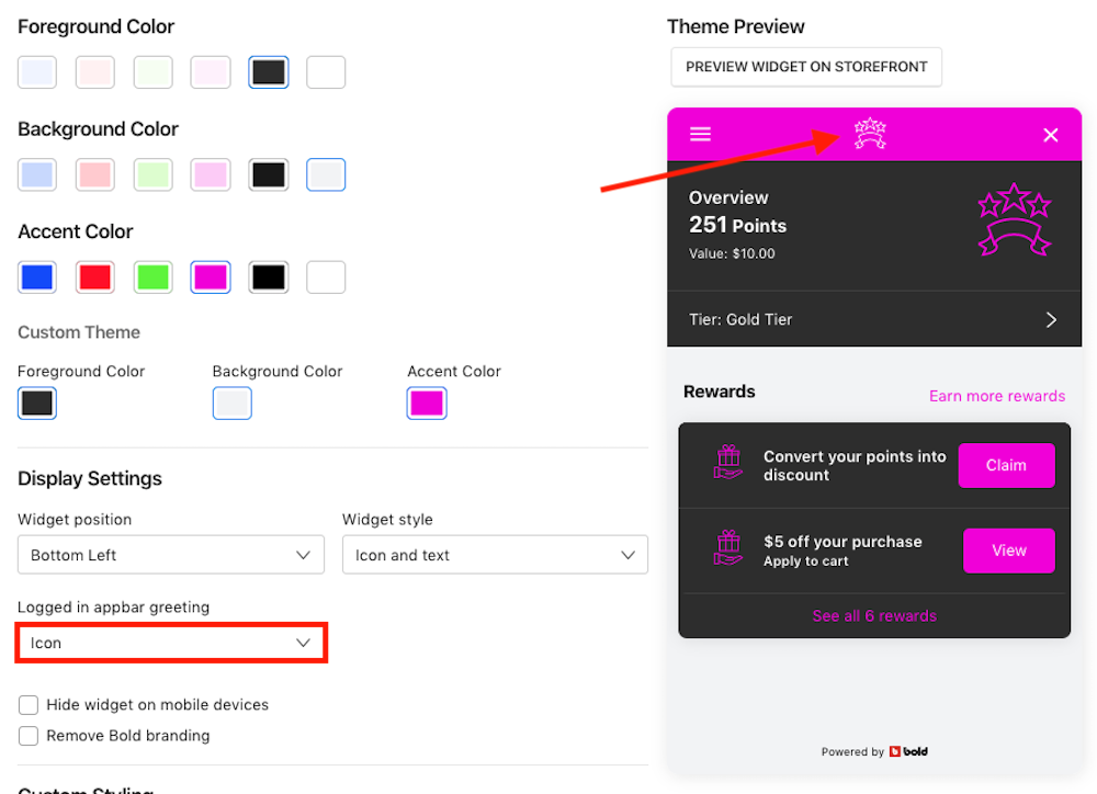 SC Loyalty Rewards allows you to change the look of your storefront widget to better suit your store's branding and color scheme.