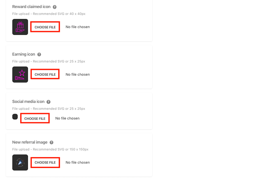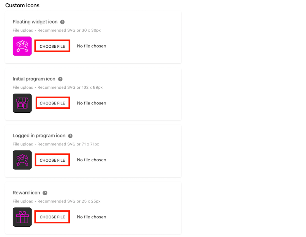 - Initial program icon: This will show to customers in the widget, when they click to sign up for your program.