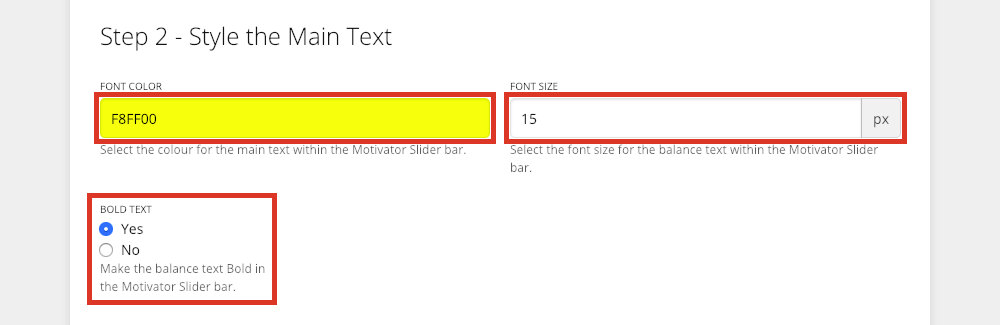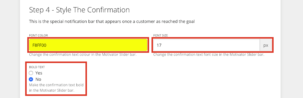 - Select the confirmation text's colour, size, and boldness.