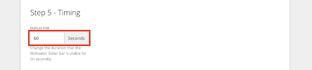 Note: This is how long the banner will display to your customers each time it shows on the storefront. Visit How does the display timer work in Motivator? for more information.
