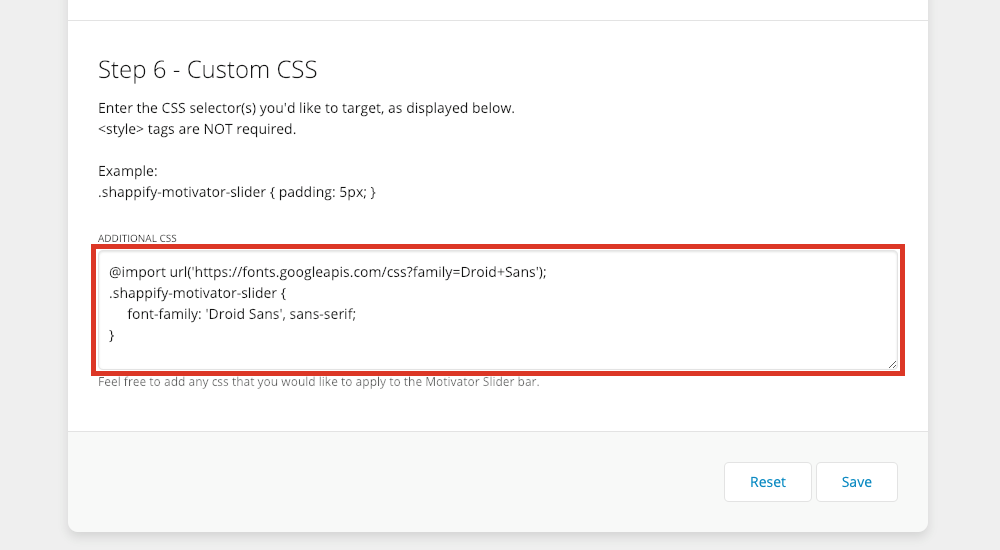 Note: Making adjustments to Motivator requires a knowledge of CSS. If you are not comfortable with completing this on your theme, one of our partners would be happy to help with a paid customization on your store. Please reach out to HeyCarson via this form.