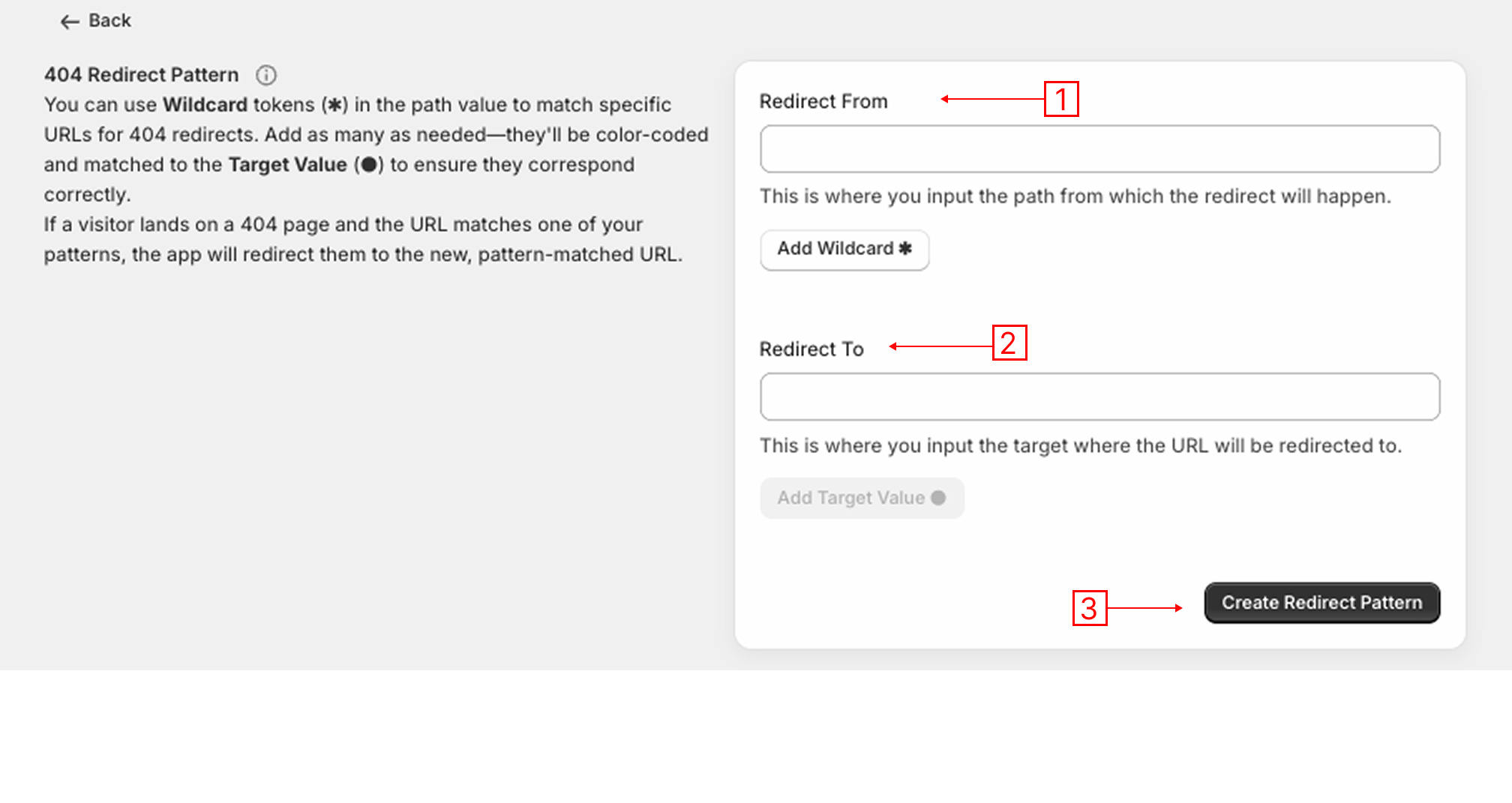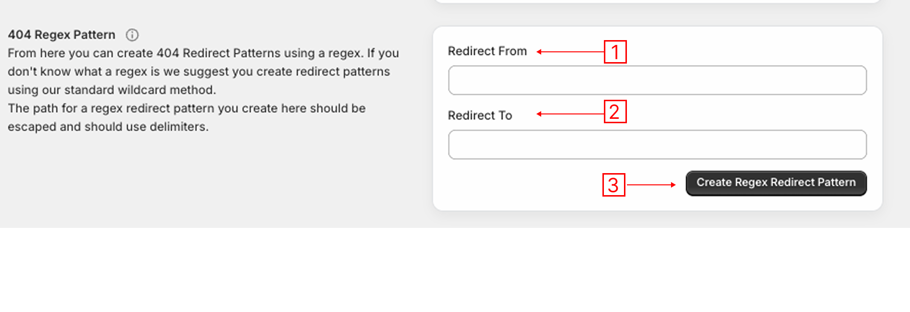 Go to "Create Redirect Pattern" on Redirect patterns.