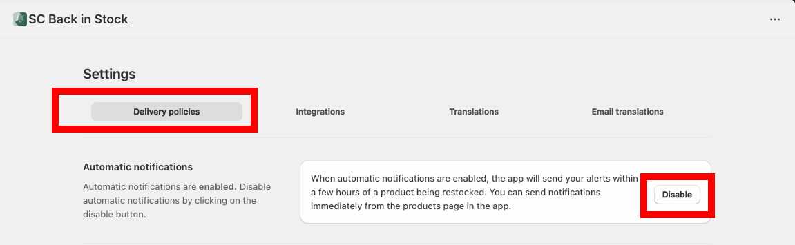 Click on the Disable button to disable automatic notifications.