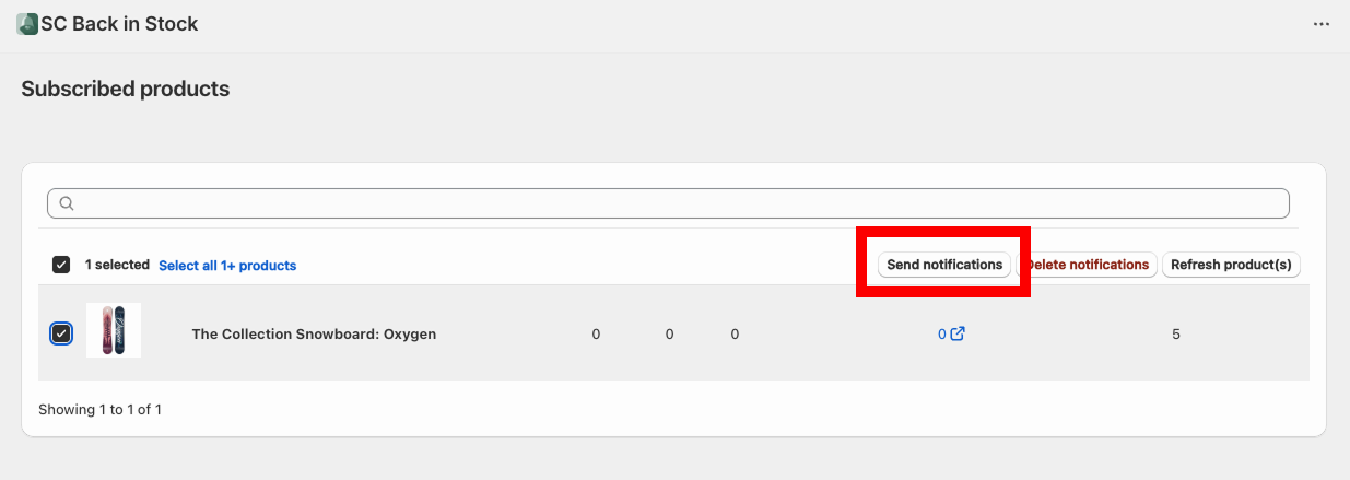 Here, you can also delete notifications or refresh products if you want to update the title, variant title or image of the product(s) with any new information available.