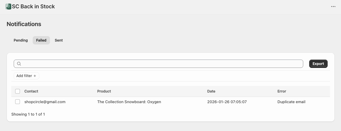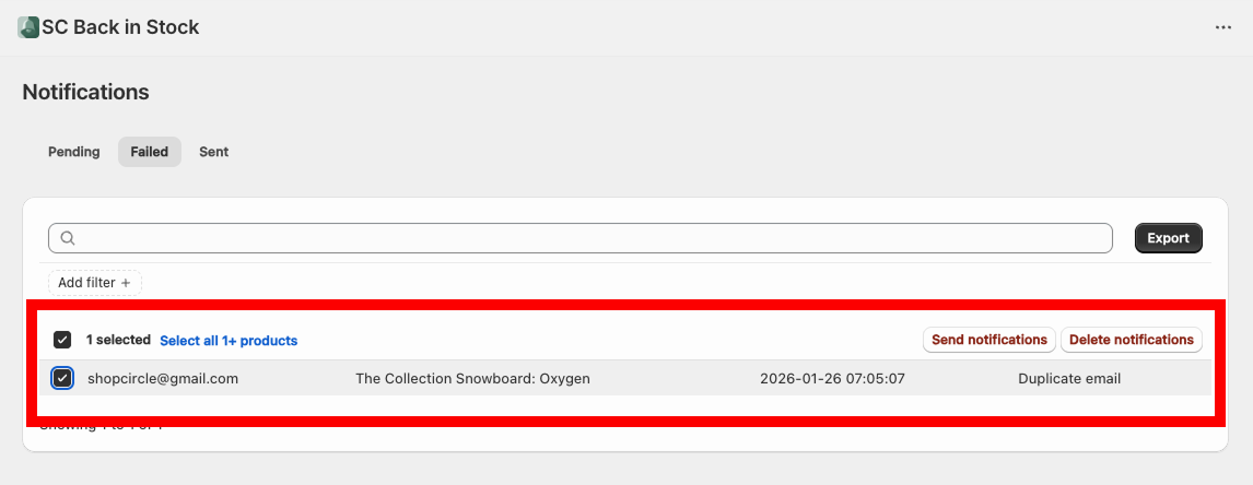 Our Back-in-Stock app automatically identifies notifications that were unsuccessful in reaching their intended recipients.
