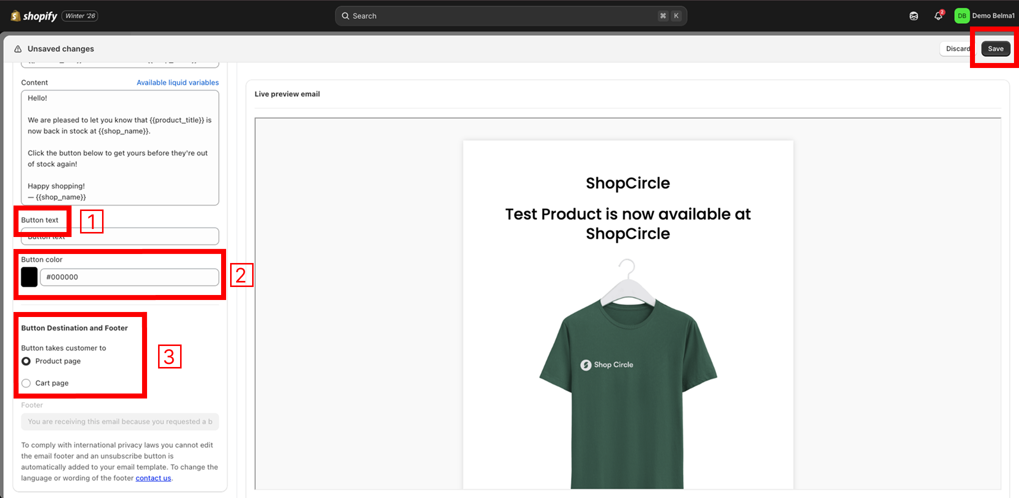 In the Back In Stock app, go to the Design page.