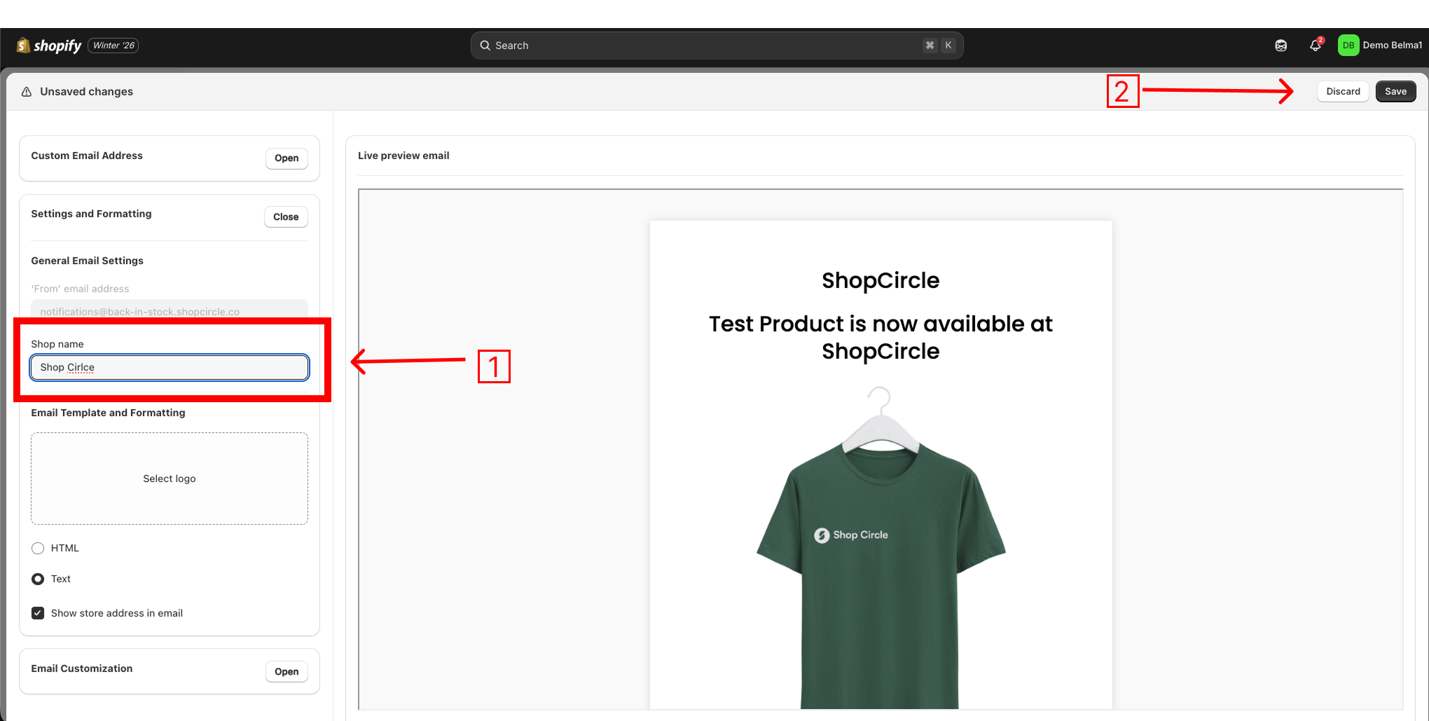 Scroll down and you'll see various options which you can use to customize your email template like shop name, header, content etc.