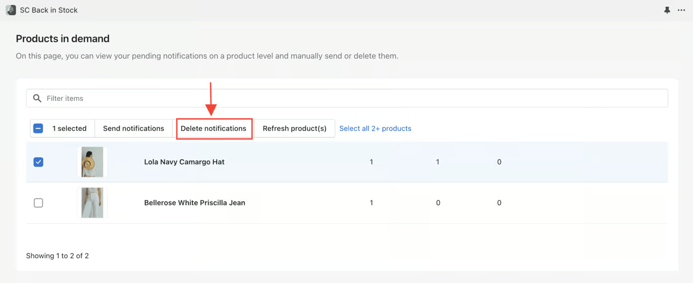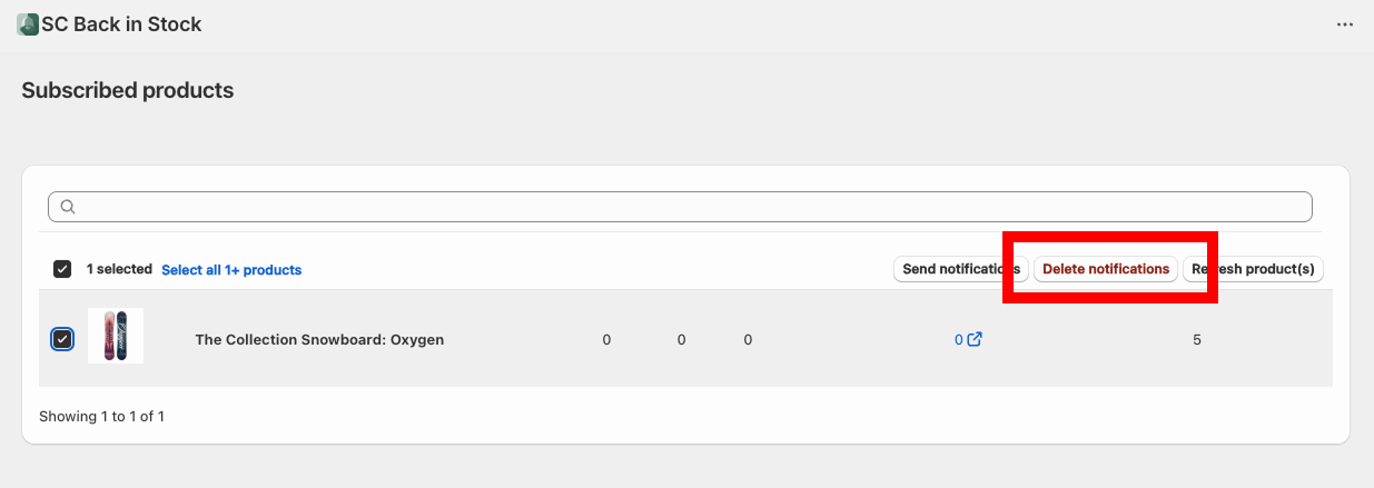 You can go to the Products tab, select the product you wish to remove, and click on Delete notifications.