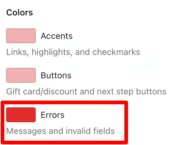 This element will highlight any error messages that must be corrected before moving forward through the checkout process.