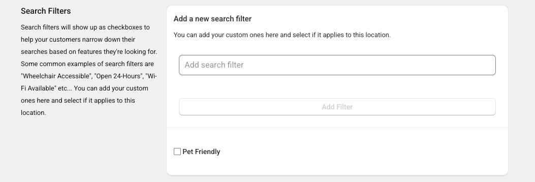To demonstrate how search filters work, we will use the example of a 'Pet Friendly' filter. Following this specific use case will help clarify the setup process from start to finish.