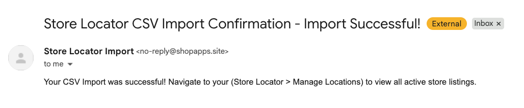 10. Hold tight while we import and geo-locate your stores. Once complete you will receive a confirmation email to your inbox. If the email is not received please check your spam/junk folder.