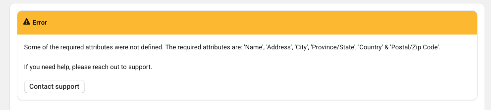 - Please make sure you populate all 6 mandatory fields: Store Name, Address, City, Province/State, Country, Postal/ZIP Code.