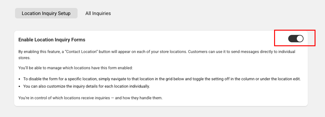 Only locations set to "Enabled" will display the inquiry button on the storefront.