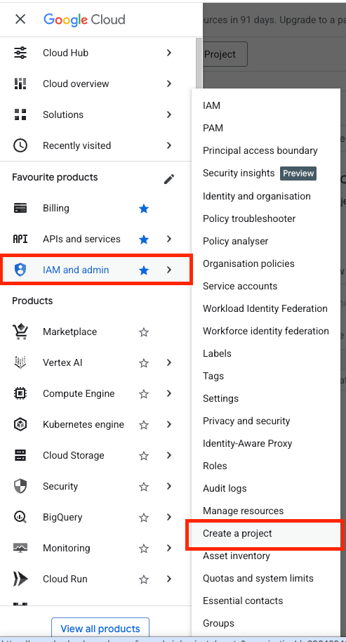 2. Click the menu button and select IAM & Admin.