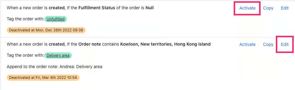 Click on the Activate link on the right-hand side to reactivate a workflow