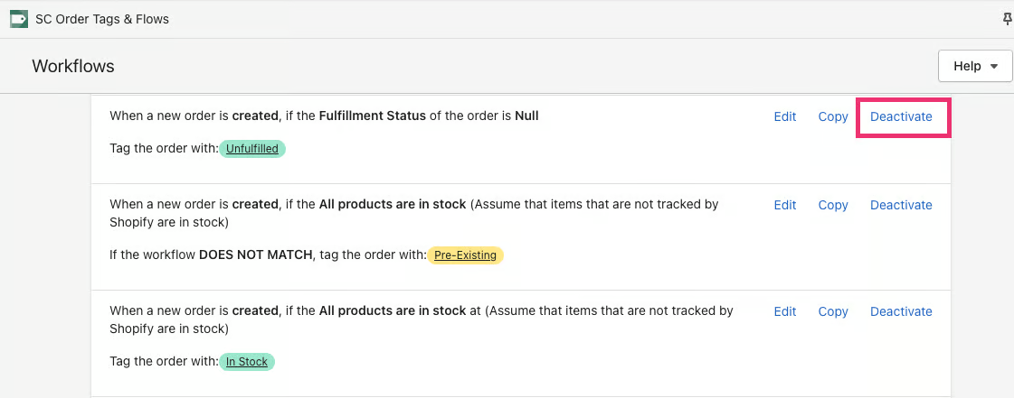 If you would like to deactivate one of your workflows, we have an option to do this on an individual workflow basis.