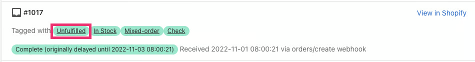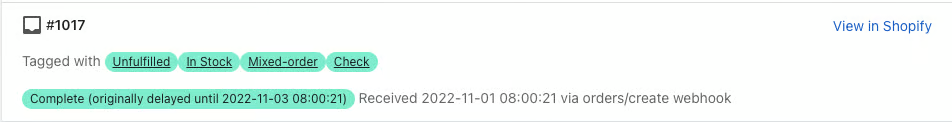 It's also a good way to prove that we have received and processed the order, especially if there are other apps in your store that also apply tags to the order. With multiple apps adding order tags, this can occasionally result in tags being overwritten. See our article on Delayed Tagging for our native solution to that.