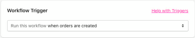 Define the trigger to determine at which point you would like the workflow to run, we recommend selecting the trigger when orders are created.
