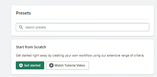 Click: Get Started, to create a new workflow from scratch