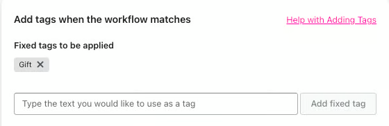 Define the tag name/names that you would like to be applied when this workflow matches your criteria (don't forget to click the Add fixed tag button):