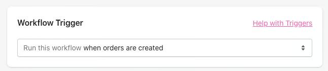 Define the trigger to determine at which point you would like the workflow to run, we recommend selecting the trigger when orders are created.