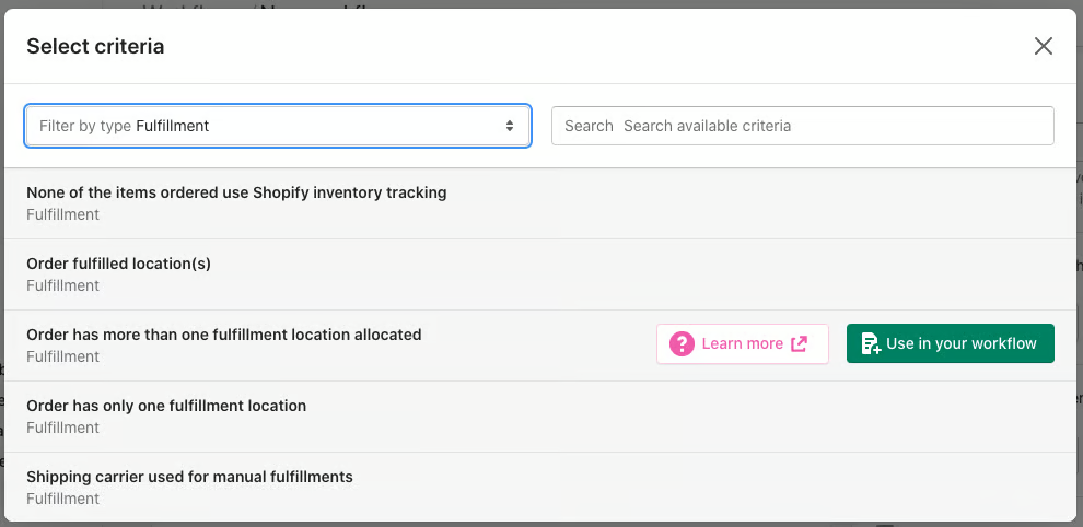 Click the Use in your workflow button to select this criteria.