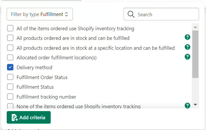 As a business owner, you may want to track the delivery method of the order. This is where our simple delivery method criteria can be useful.